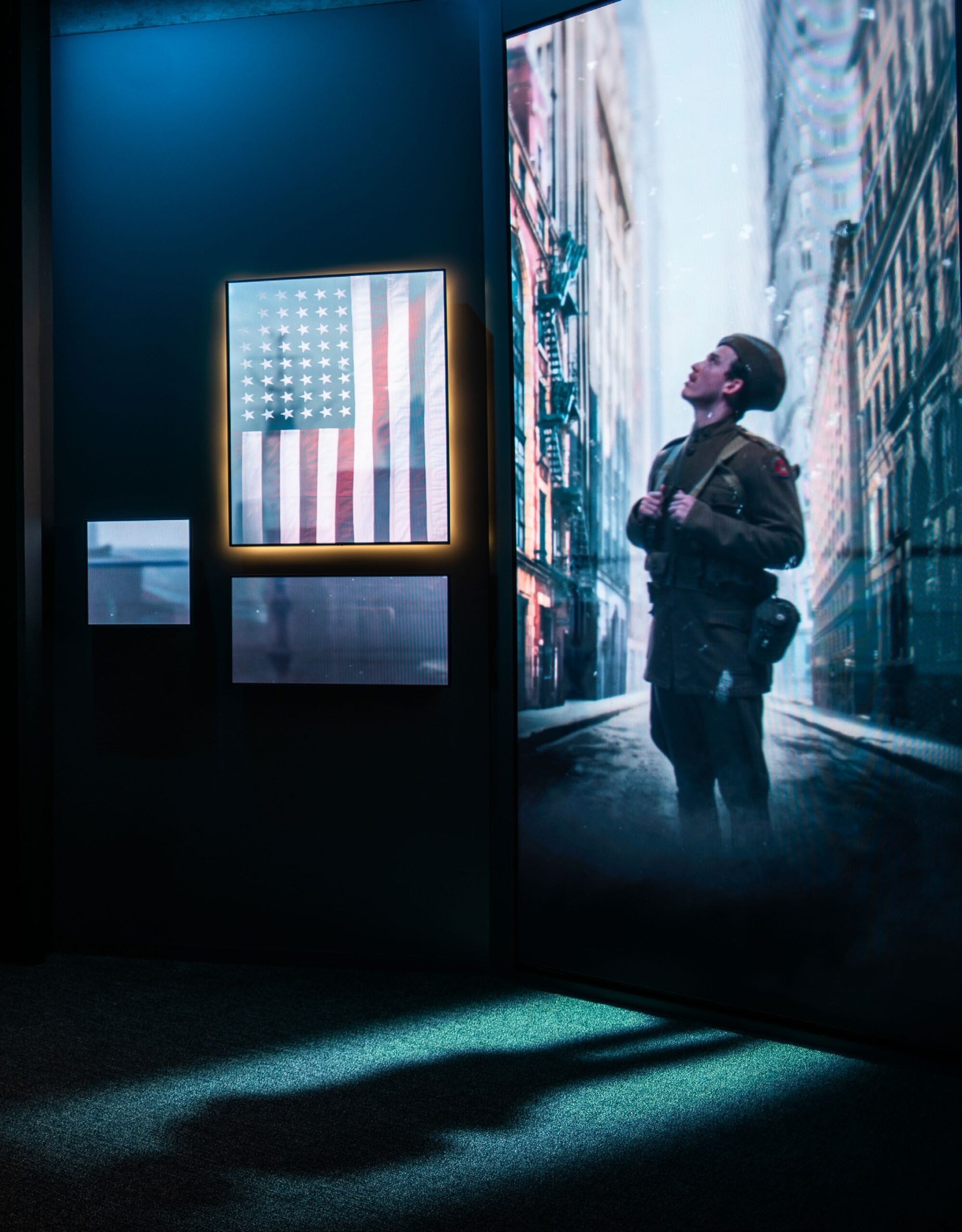 At the heart of Encounters is a Nanolumens 1.25mm LED display, presenting 16 authentic personal stories with stunning clarity. Paired with spatial audio and immersive media, the display creates an intimate, one-to-one connection that allows visitors to truly feel the experiences of those who lived through the Great War.