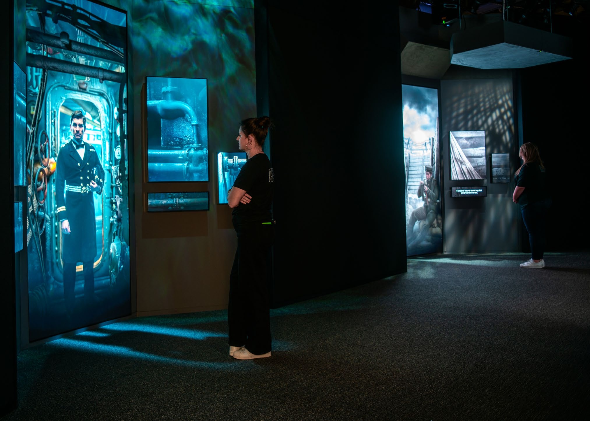 Across the museum, advanced audiovisual systems further enhance the impact. In Horizons Theater, a blend of projection, lighting, and scenic design recreates the harsh conditions of trench warfare. In Battlescapes, guests step into a crater and experience the intensity of artillery fire all around them.